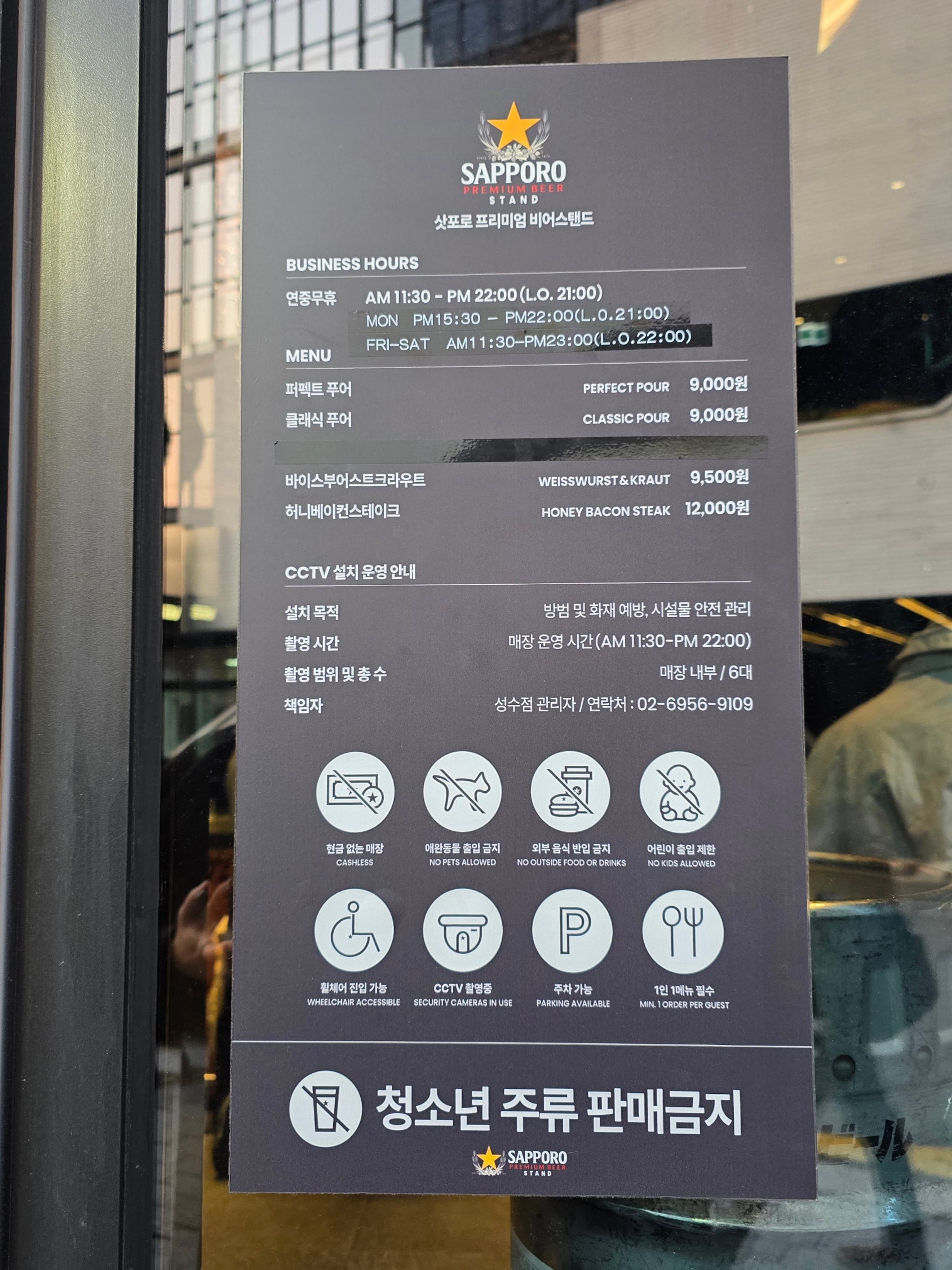웨이팅 등록은 매장 안에서 할 수 있다. 대기 등록 예약을 걸어두고 잠깐의 대기 후 입장할 수 있었다. 삿포로 프리미엄 비어 스탠드는 스탠딩 바 형태의 좌석으로, 서서 술과 안주를 즐기는 곳이기 때문에 생각보다 빈 좌석들이 금방 생기는 편이었다.